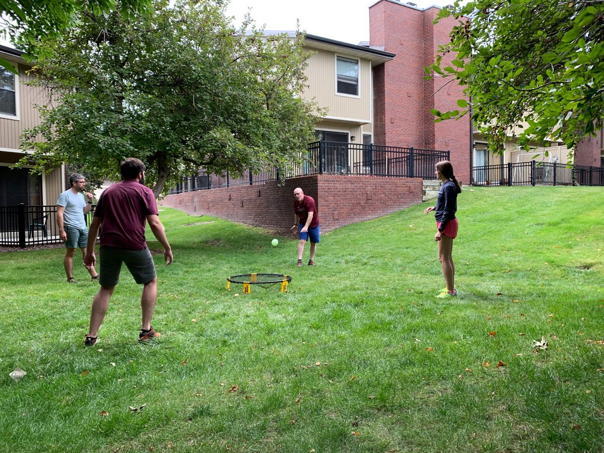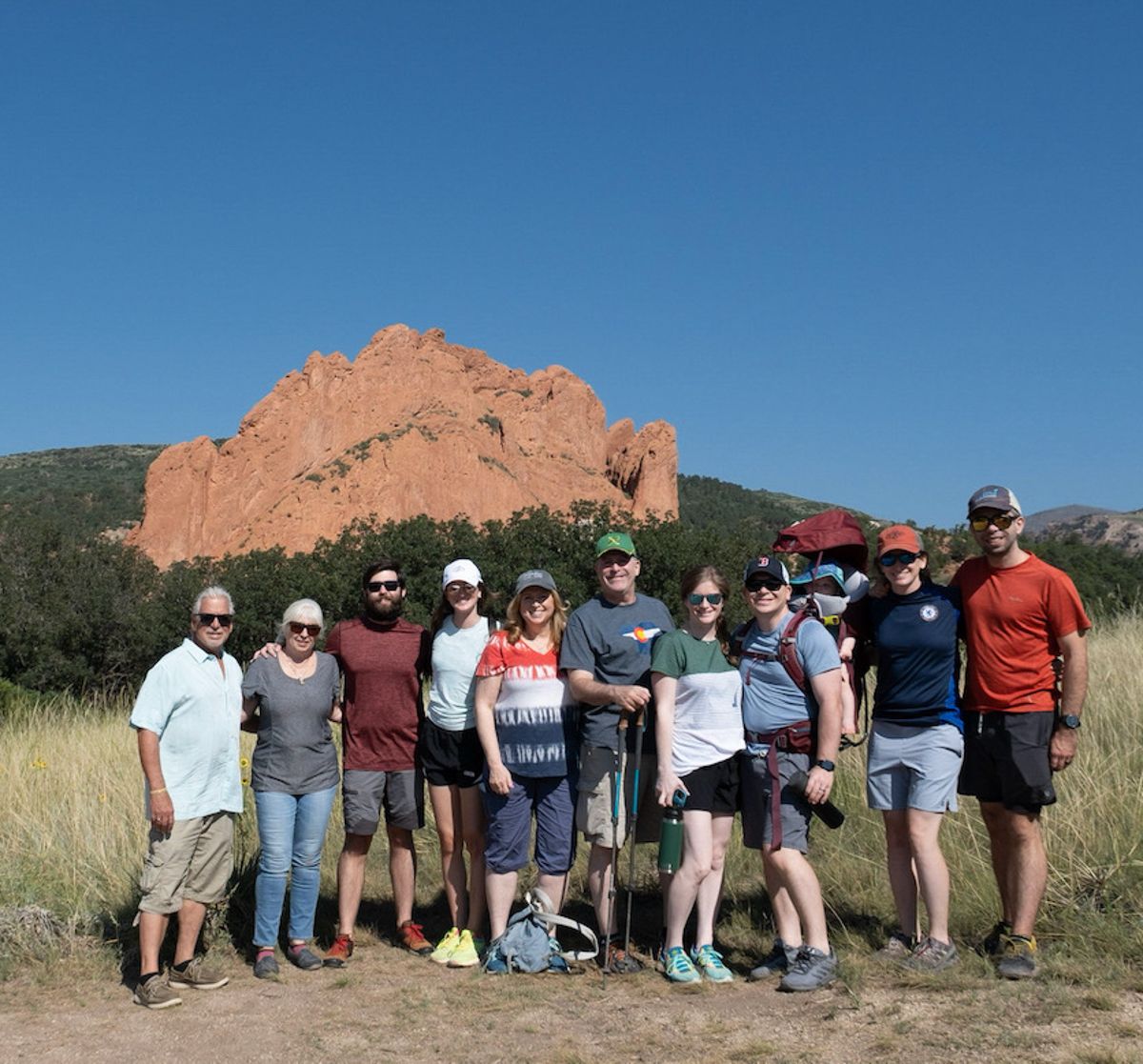 More climbing in Clear Creek Canyon. What is cool is how close we are to climbing for after work! We also went to a Rockies game - always a good time. Mid August Julz came out to visit early. We took her on some scrambling on Mount Morrison in Golden and hiking at Sky Pond in Rocky Mountain National Park. The rest of the family then flew in for a weekend all together! We all went down to Colorado Springs and had a blast hanging out together. Checked out Garden of the gods, cave of the winds, tubed clear creek and played some spikeball in the backyard.