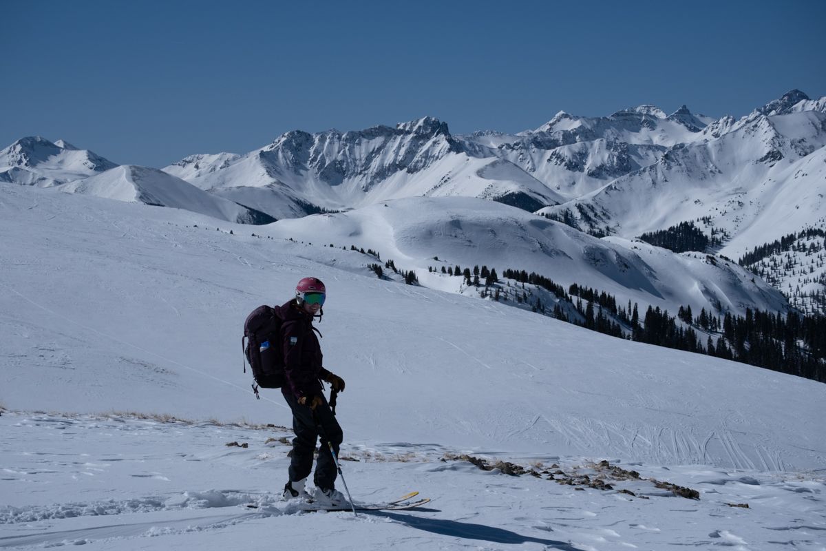 We went to Ouray Ice Park for ice climbing. It was fun to spend so much time top rope ice climbing to improve. While down there we checked out red mtn pass for some low angle turns off McMillan Peak. Lots of powder for March both at the resort and the backcountry. Did you know March is considered the snowiest month in CO?