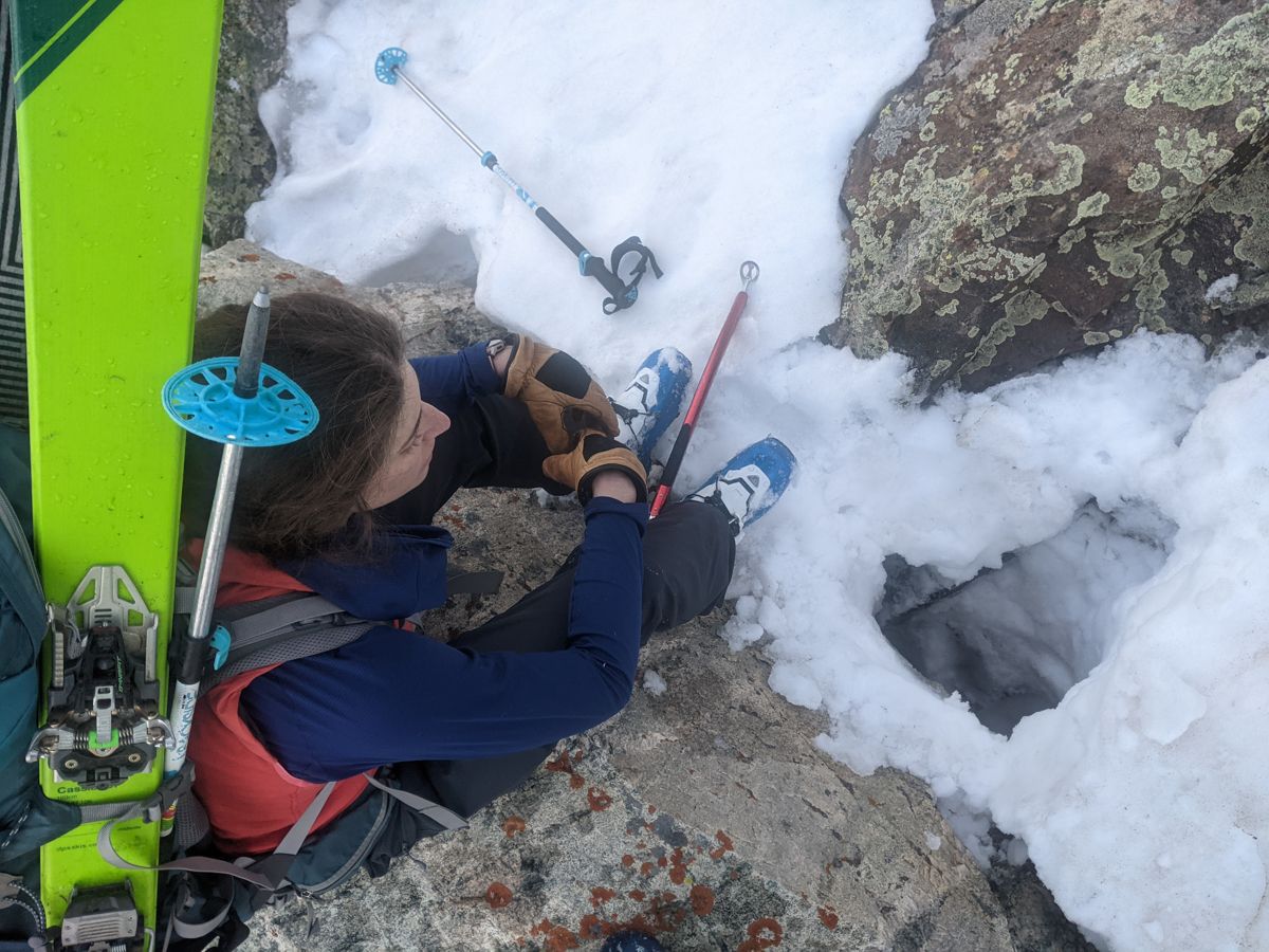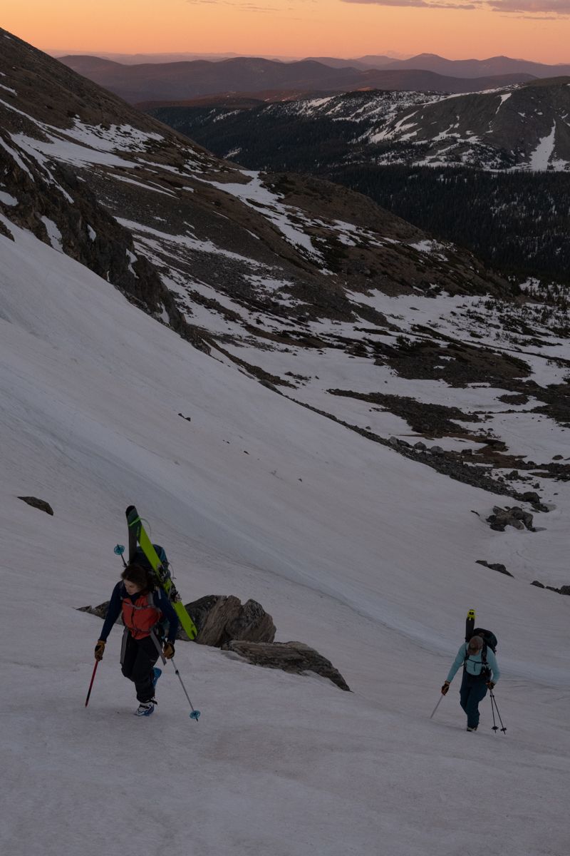 Two more ski trips of the season were to North Arapahoe in the Indian Peaks and Tuning fork couloir on Torreys peak. For North Arapahoe we camped the night before as the line is pretty far in. With a poor freeze and a long way to go we turned around. Tuning Fork the next day also had a poor freeze. We were about 500 ft from the Summit before turning around due the warmth. We are looking forward to coming back to this line with a good freeze as it has a short approach and almost 3,000 ft of skiing! This was our last ski day of the season and we got close to 50 days with most of those consisting of uphill!