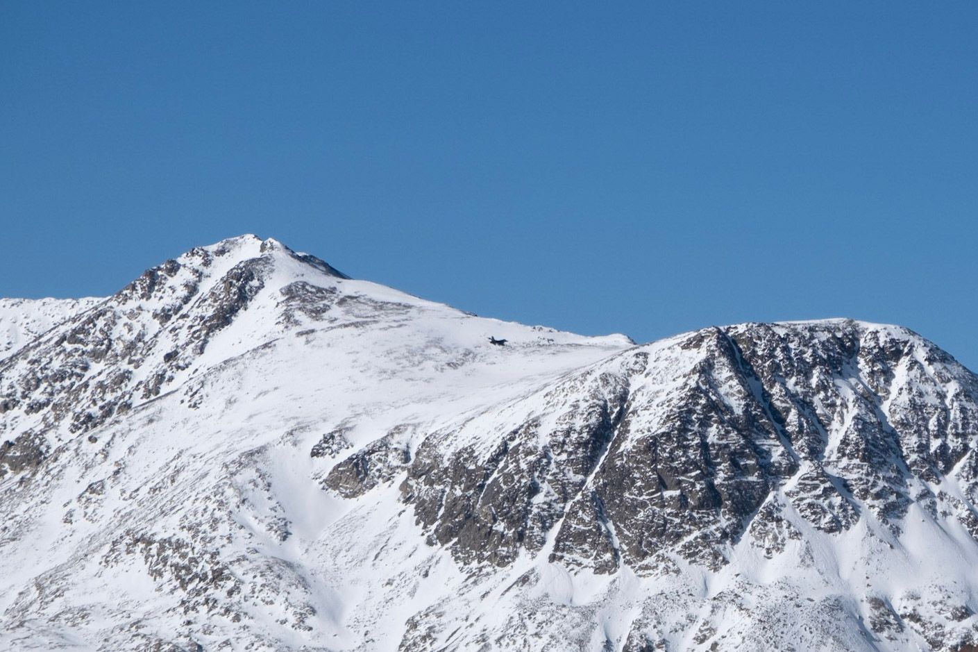 We worked our way up the slope, eventually contouring around and bypassing the first highpoint. We figured we would hit plenty of them along the ridge. On our way around, several jets flew at eye-level through the valley between North Star and Lincoln, and I managed to grab a couple photos.