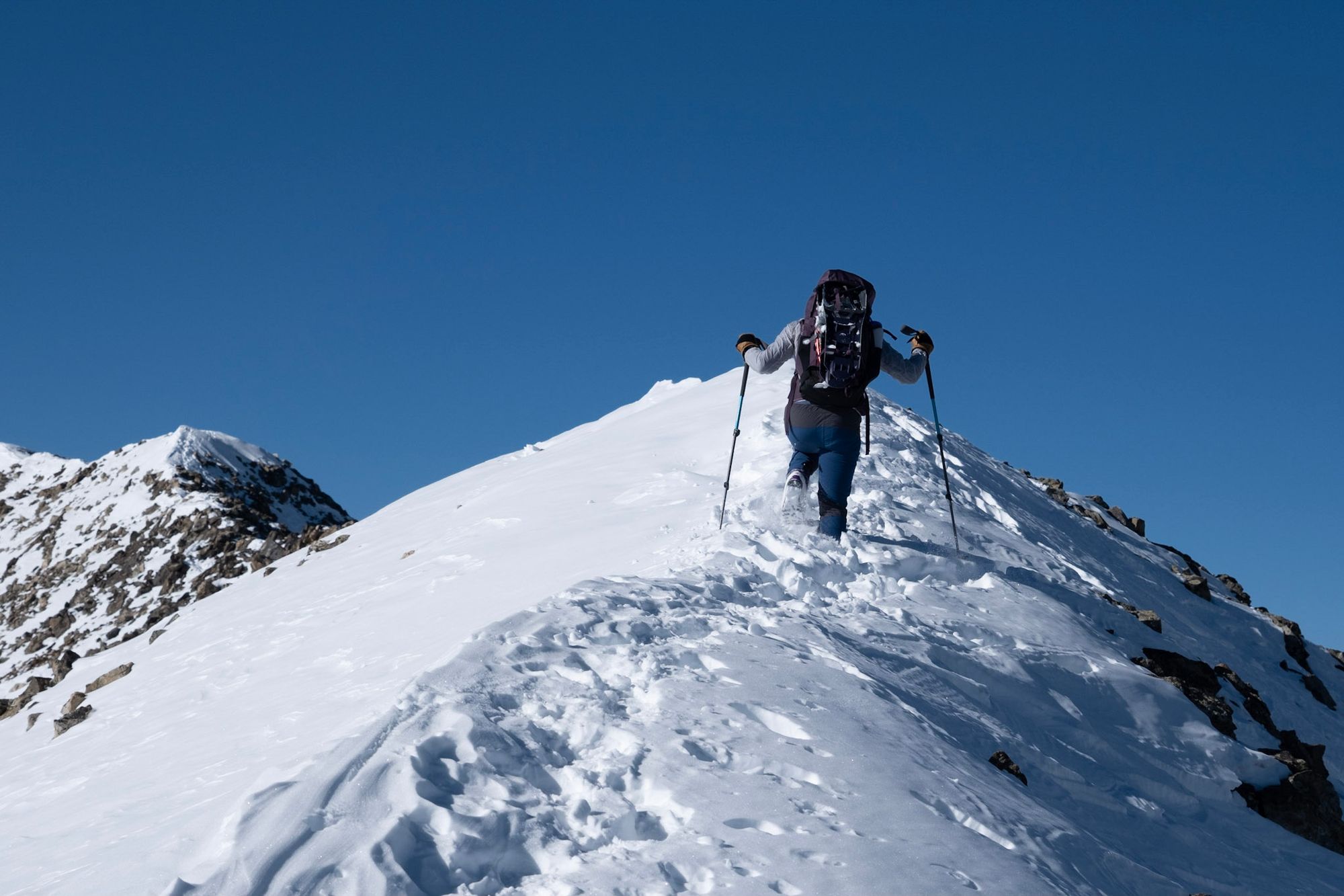 Shelby and Andrew hike the East ridge of North Star Mountain in early winter.