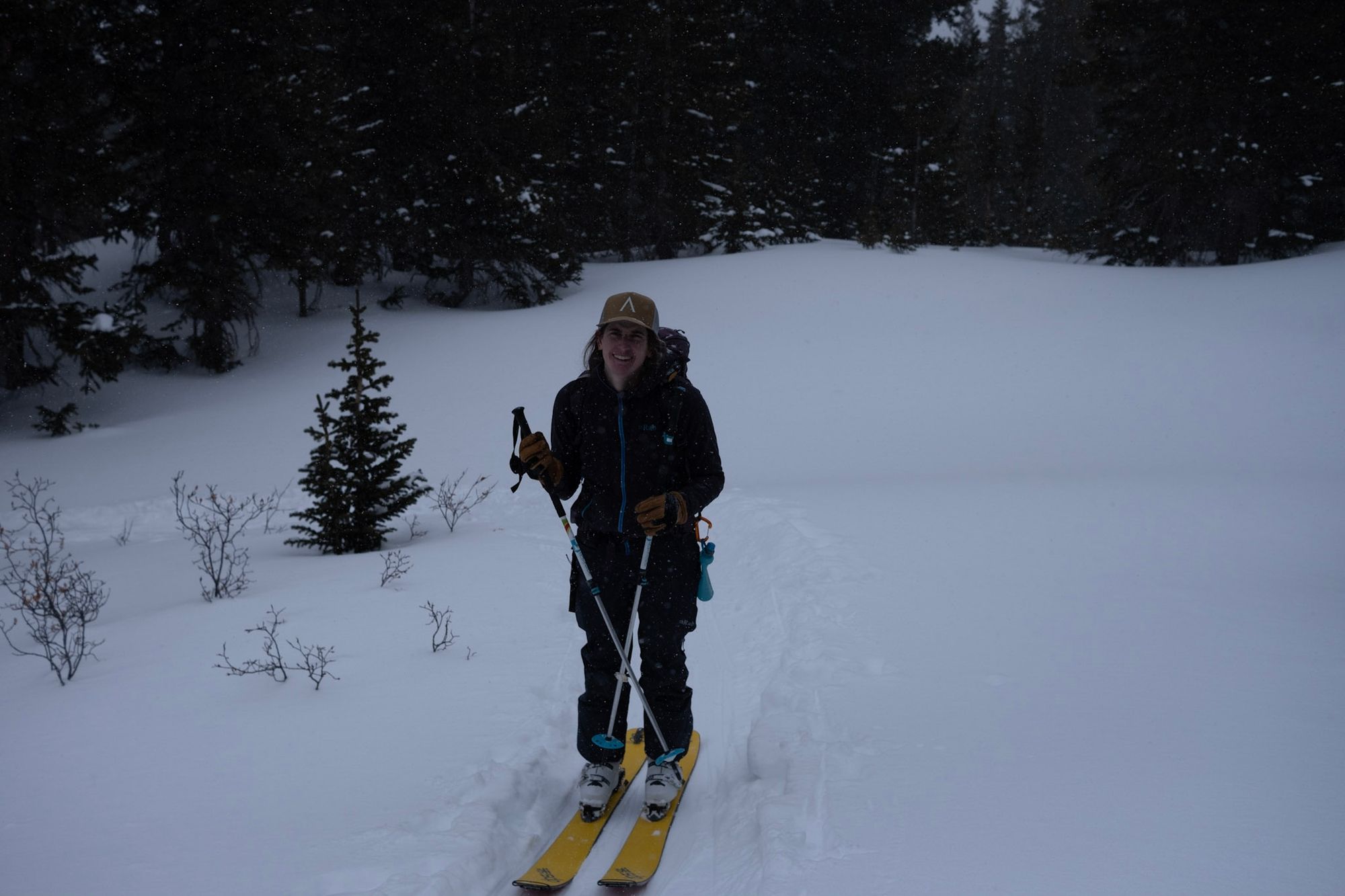 We flip flopped back and fourth during the exit, where some of us attempted to keep the skins in the pack, while the others (maybe smarter) did fewer transitions and kept their skins on. Shelby and I opted to keep the skins off until we hit the road at the base of the valley, and skinned back to the car from there.